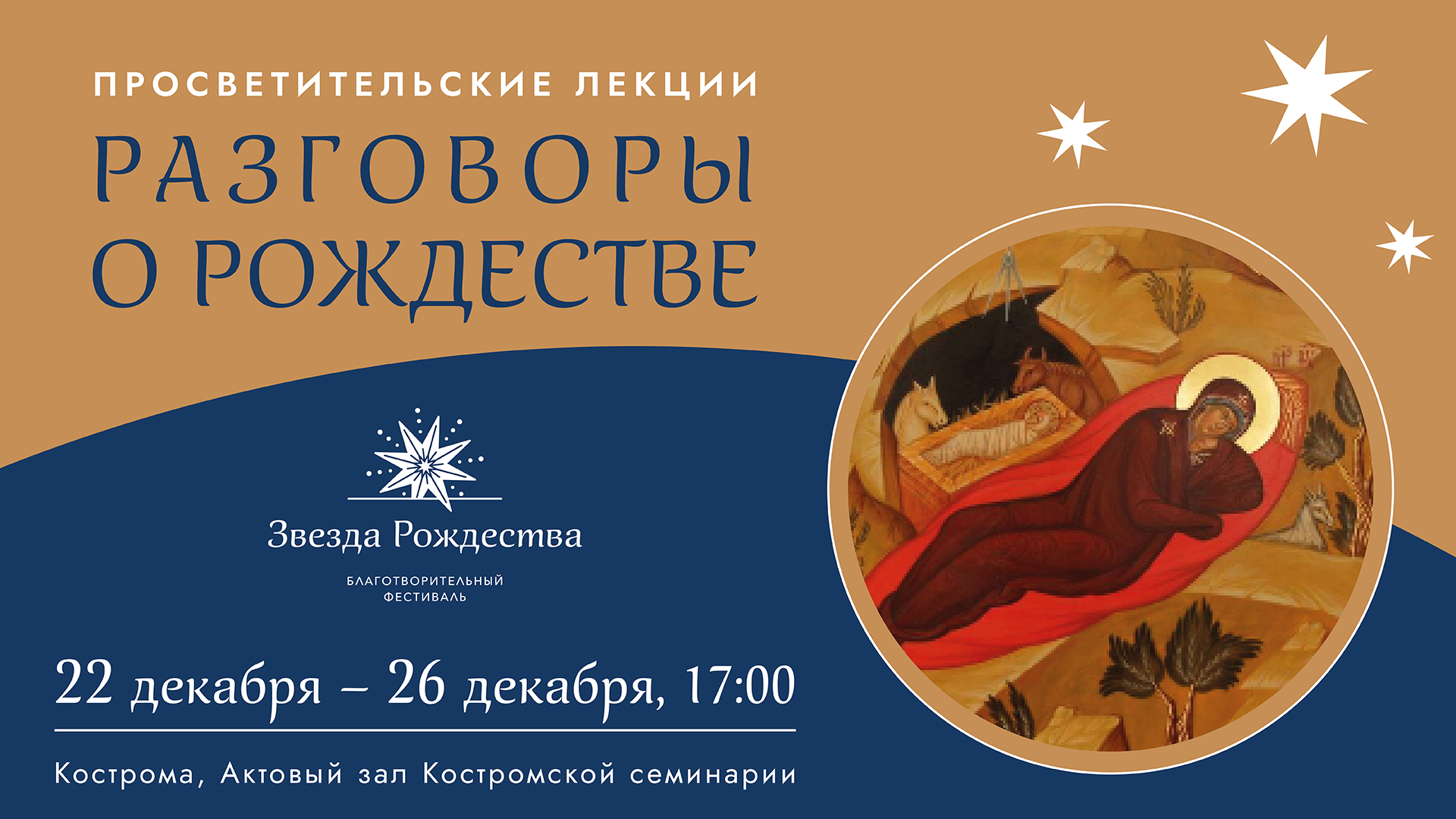 Вас ждет не только развлекательная программа, но и просветительские лекции о Рождестве. Благотворительный фестиваль «Звезда Рождества. Кострома» приглашает на цикл лекций о смысле и традициях Рождества в актовом зале Костромской семинарии. 25 декабря выступит Татьяна Грудинская, психолог-консультант, выпускница ФДО ПСТГУ по программе «Теология».